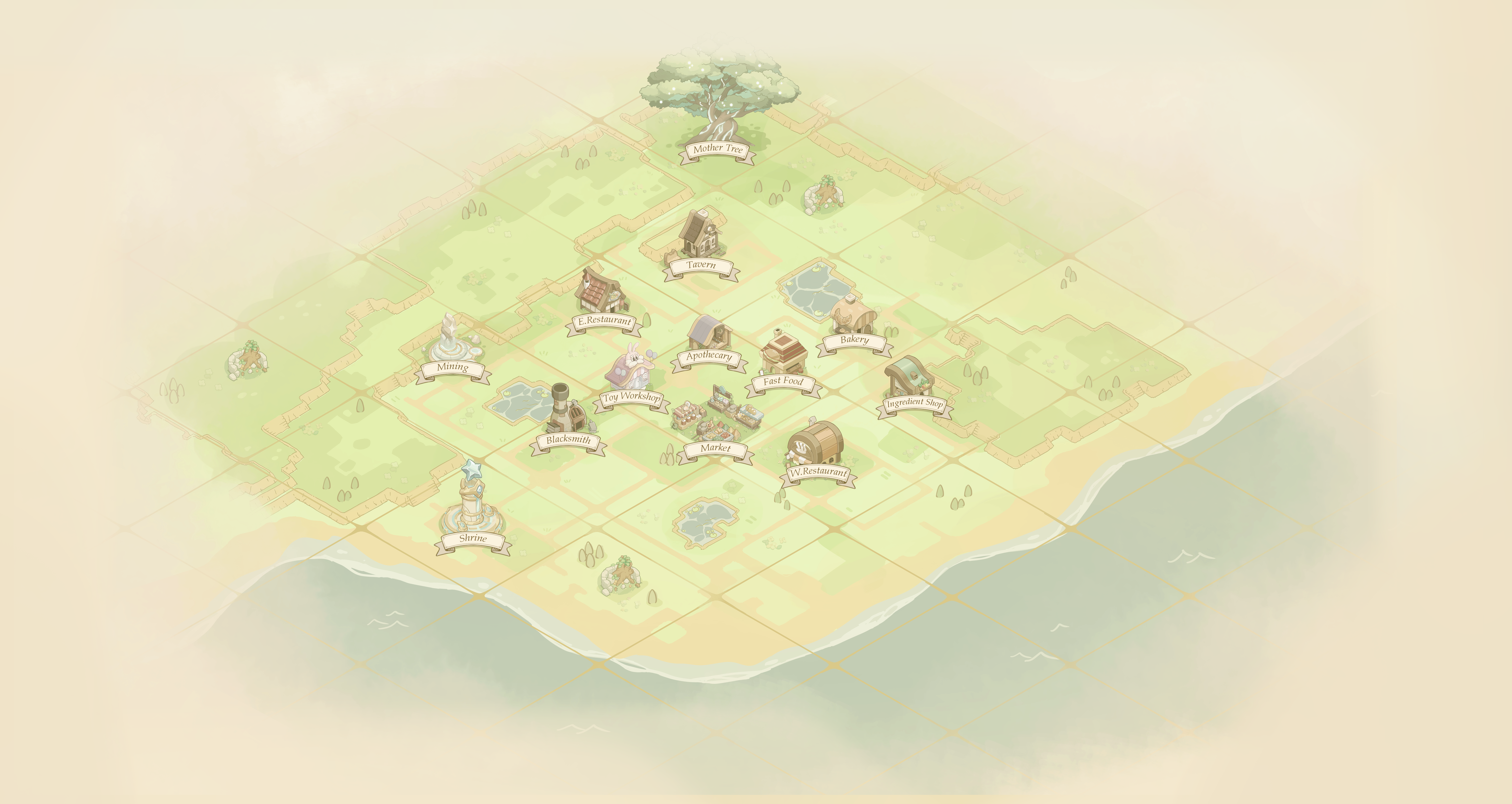 | <p><img src="https://1793530388-files.gitbook.io/~/files/v0/b/gitbook-x-prod.appspot.com/o/spaces%2FREt91QSTXnfnSEPOIufc%2Fuploads%2FOwBblvY7Xx8LZ9asAXm6%2FProcessed%20ingredient%20shop.png?alt=media&#x26;token=e625e404-7653-4f67-a78a-e3332630f5db" alt="" data-size="original"></p><p><br>Processed Ingredient</p> |                   <p>Craft some <strong>materials</strong> needed for crafting food items.<br></p><p><img src="https://1793530388-files.gitbook.io/~/files/v0/b/gitbook-x-prod.appspot.com/o/spaces%2FREt91QSTXnfnSEPOIufc%2Fuploads%2F65mTJL79CcmUPHR26Pti%2Fico_Flour.png?alt=media&#x26;token=ee3f6889-901b-4990-8214-00d69694161b" alt="" data-size="line"><img src="https://1793530388-files.gitbook.io/~/files/v0/b/gitbook-x-prod.appspot.com/o/spaces%2FREt91QSTXnfnSEPOIufc%2Fuploads%2FYR7qbVCWtFV4faZweygs%2Fico_Butter.png?alt=media&#x26;token=9bf58c68-e92d-4de6-92b5-5d9fbc3a70aa" alt="" data-size="line"><img src="https://1793530388-files.gitbook.io/~/files/v0/b/gitbook-x-prod.appspot.com/o/spaces%2FREt91QSTXnfnSEPOIufc%2Fuploads%2FEyZuwBbHJeOkdW7ZyCIU%2Fico_Plant-oil.png?alt=media&#x26;token=f172b7a8-b7a5-4ce4-9b19-b93968dde0bc" alt="" data-size="line"><img src="https://1793530388-files.gitbook.io/~/files/v0/b/gitbook-x-prod.appspot.com/o/spaces%2FREt91QSTXnfnSEPOIufc%2Fuploads%2FxlbMkNY8xHf8ybBlephF%2Fico_Sugar.png?alt=media&#x26;token=38fb2b55-24bf-46eb-a38c-f1c8901b8255" alt="" data-size="line">& more</p>                  |