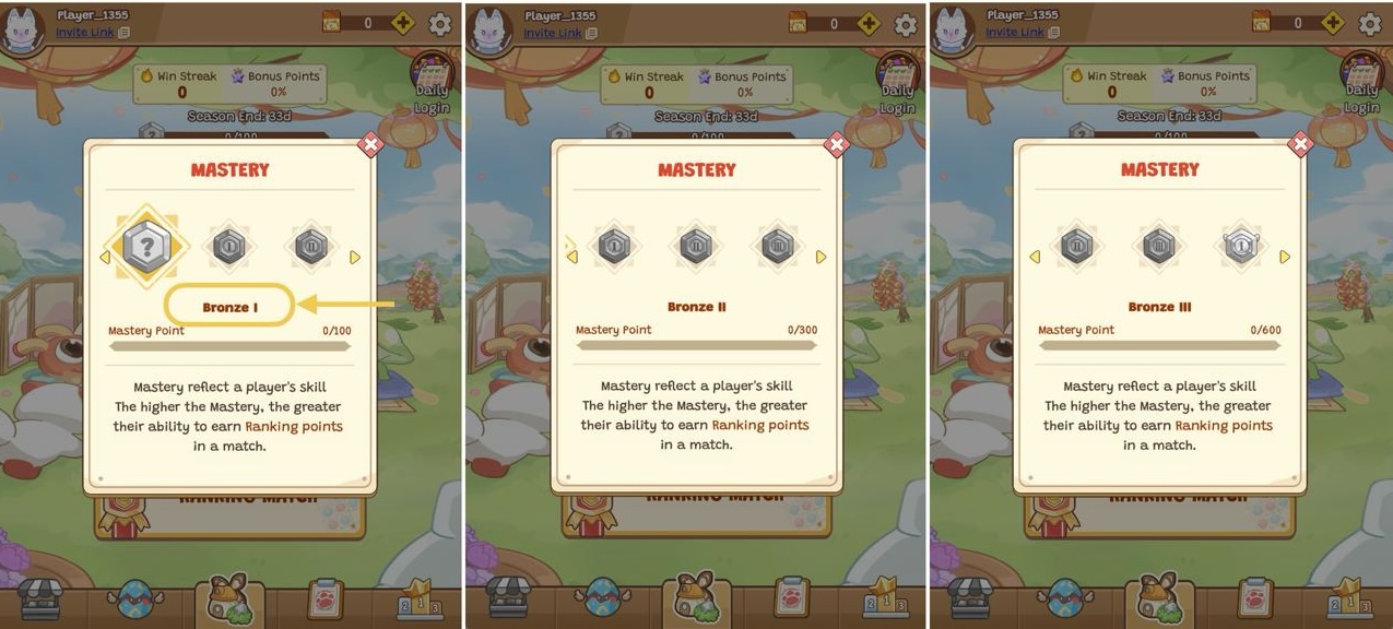 * **Higher Mastery = More Ranking Points** obtained from victories.
