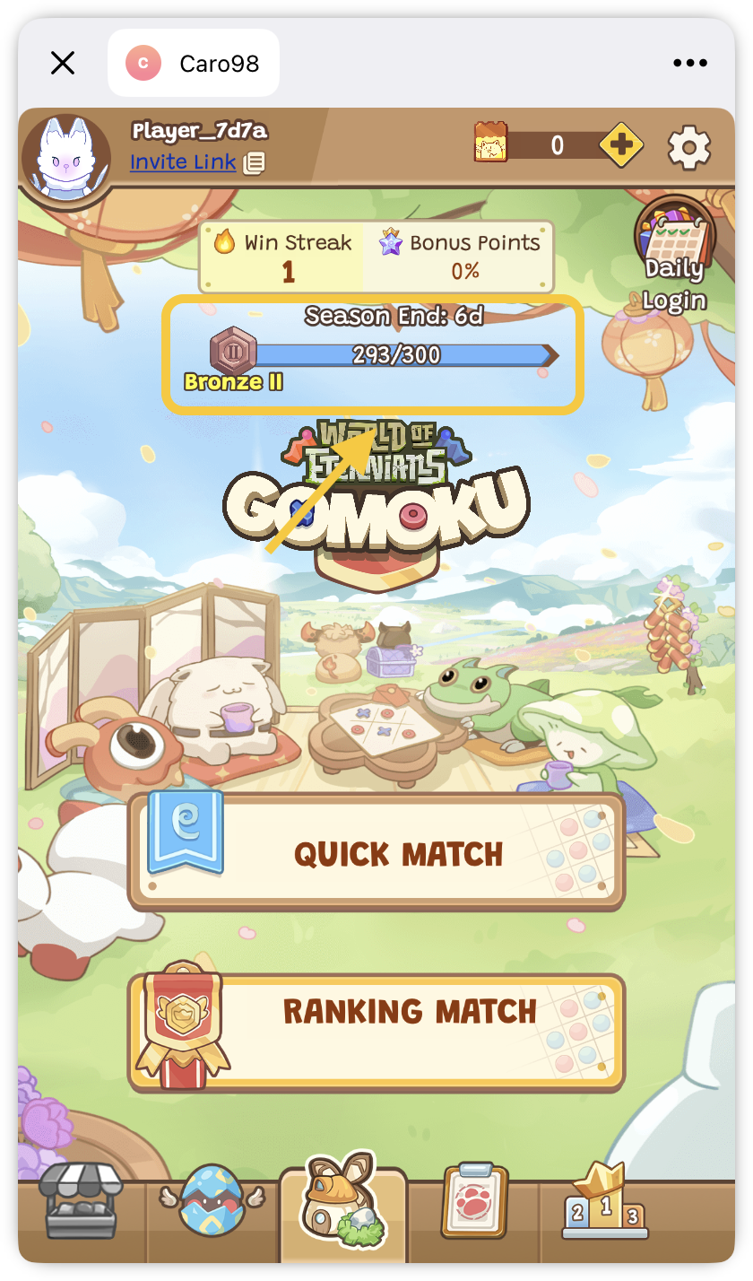 Mastery reflects a player's skill level in Eternals Gomoku. It determines the strength of opponents you face and impacts the ranking points you gain or lose in [Ranking Matches](https://docs.eternals.game/eternals_world/gomoku/ranking-match). Here’s everything you need to know about Mastery: